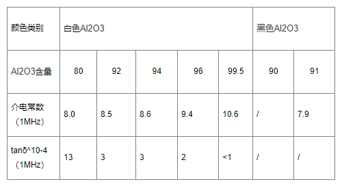 氧化鋁陶瓷通過(guò)氧化鋁純度進(jìn)行分類(lèi),氧化鋁純度為>99%被稱(chēng)為剛玉瓷,氧化鋁純度為99%、95%和90%左右被稱(chēng)為99瓷、95瓷和90瓷,含量> 85%的氧化鋁陶瓷一般稱(chēng)為高鋁瓷。黑色氧化鋁陶瓷基板多用于半導(dǎo)體集成電路及電子產(chǎn)品中,這主要是由于大部分電子產(chǎn)品具有高光敏性,需要封裝材料具有較強(qiáng)的遮光性,才能夠保障數(shù)碼顯示的清晰度,因此,多采用黑色氧化鋁陶瓷基板進(jìn)行封裝。氧化鋁相關(guān)性能數(shù)據(jù)如圖: