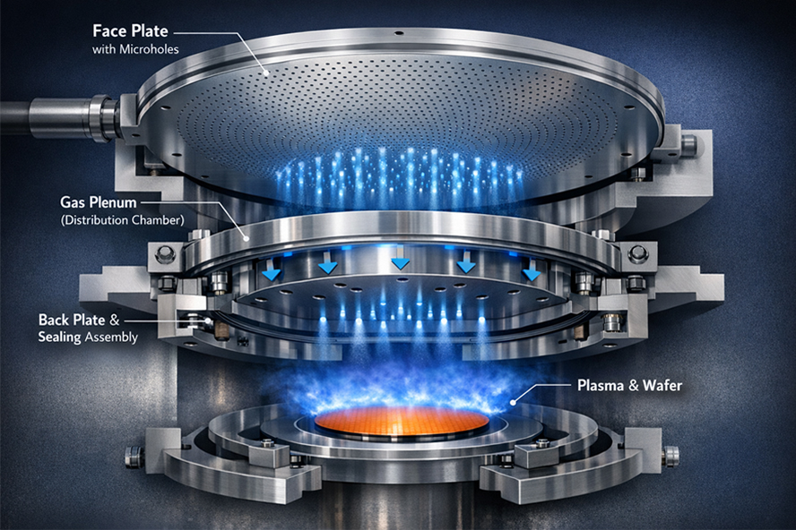 半導(dǎo)體工藝中的氣體分布均勻性直接決定著薄膜厚度一致性和刻蝕速率均一性。碳化硅噴淋頭作為反應(yīng)氣體進(jìn)入工藝腔室的“門戶”,其設(shè)計(jì)精度直接影響著整個(gè)工藝窗口。
