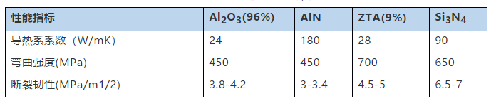 功率模塊絕緣材料選擇的主要性能是導(dǎo)熱系數(shù),彎曲強(qiáng)度和斷裂韌性。高導(dǎo)熱率是功率模塊快速散熱的關(guān)鍵,同時(shí),抗彎強(qiáng)度對于陶瓷基板在封裝流程中的處理和使用非常重要,而斷裂韌性是預(yù)測可靠性的關(guān)鍵。