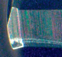 目前鉆削碳碳復(fù)合材料的鉆頭有鑲嵌PCD材質(zhì)的鉆頭,和金剛石涂層鉆頭(右圖),其中PCD鉆頭常用材質(zhì)是CDW302材質(zhì)(左圖)。CDW302材質(zhì)鉆削復(fù)合材料工藝穩(wěn)定,產(chǎn)生較少的熱量;更佳的孔眼質(zhì)量、精度和表面粗糙度。