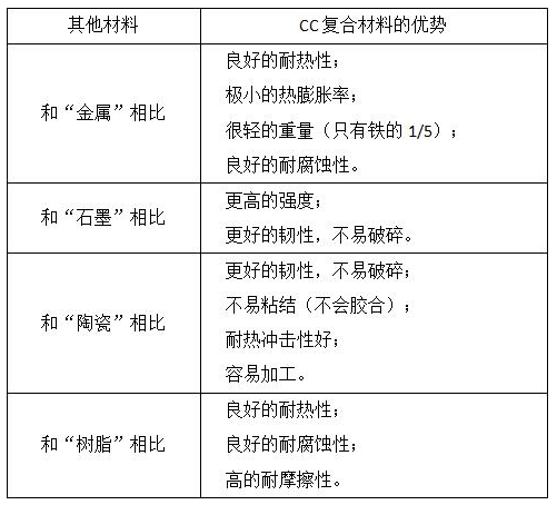 碳碳(CC)復(fù)合材料相比其他材料的優(yōu)勢(shì):